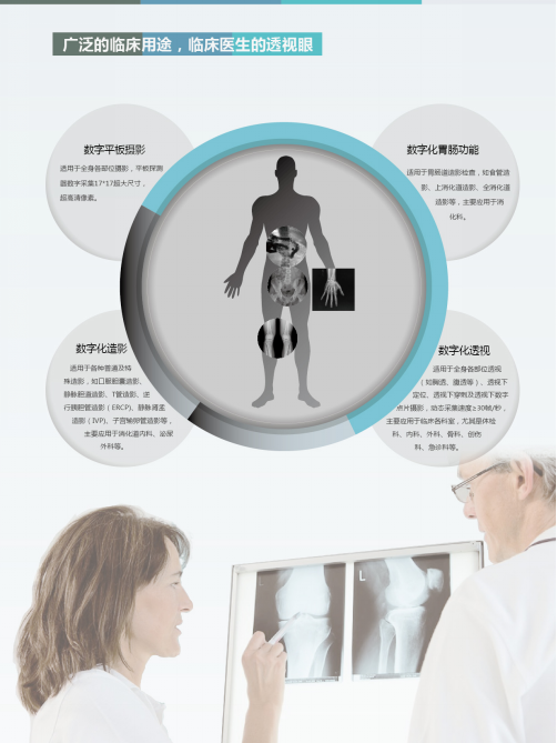 一、數(shù)字平板攝影:真正的動態(tài)DR采用平板探測器成像,可替代平板DR進行數(shù)字攝影,獲得高度千萬像素的大尺寸(通常是17"*17"或14"*17")影像。