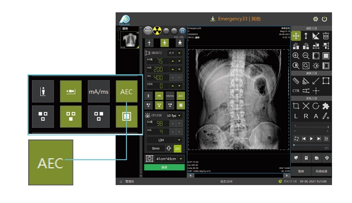 自動曝光控制(AEC)功能可以根據被照體的厚度、生理及病理特征,準確、自動控制X線劑量,使不同部位、不同病人拍攝的圖像,具有相同的感光量,徹底解決感光量不一致的問題,保證良好的影像效果。操作醫生無需選擇參數,只需擺完體位后,按預設值曝光即可完成攝片。
