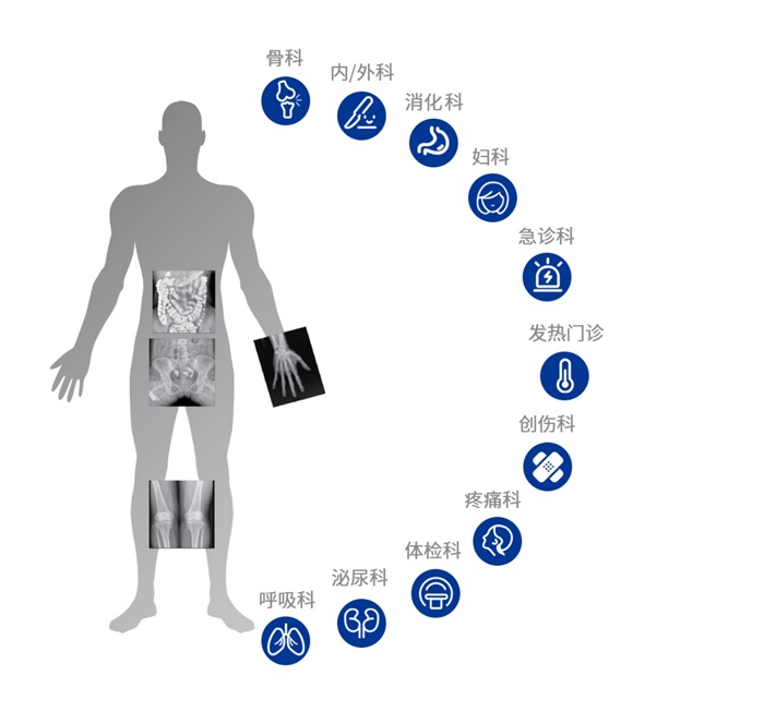 其次,臨床應(yīng)用更加廣泛,能為影像科提供全科解決方案,針對(duì)體檢科、內(nèi)科、外科、骨科、急診科等也能提供相應(yīng)的解決方案,且檢查更精準(zhǔn)、直觀,擺位攝片效率極大地提升,大大節(jié)省拍片時(shí)間。