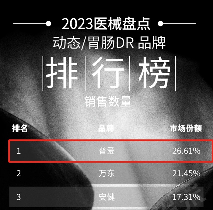 伴隨影像技術(shù)的不斷發(fā)展,集攝影、透視、胃腸、造影等多種功能于一體的動態(tài) DR 逐漸成為醫(yī)療機(jī)構(gòu)的主流之選。作為國內(nèi)杰出的醫(yī)療設(shè)備企業(yè),普利德醫(yī)療憑借多年的技術(shù)積累,深度耕耘動態(tài) DR 細(xì)分領(lǐng)域,通過不斷的技術(shù)創(chuàng)新,精心打磨出更契合臨床需求的高品質(zhì)產(chǎn)品,贏得了市場的高度認(rèn)可。在 2023 年醫(yī)招采排行榜同步市占率排行榜中,動態(tài)/胃腸DR市場份額位居行業(yè)第一!